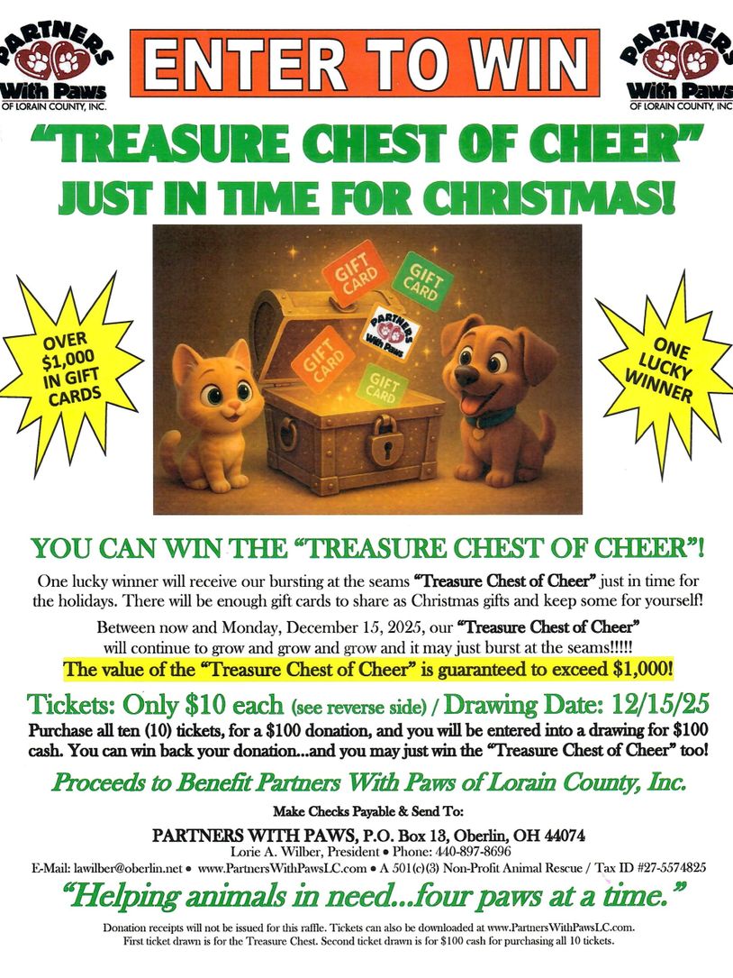 You can win back your donation…and you may just win the “Treasure Chest of Cheer” too!